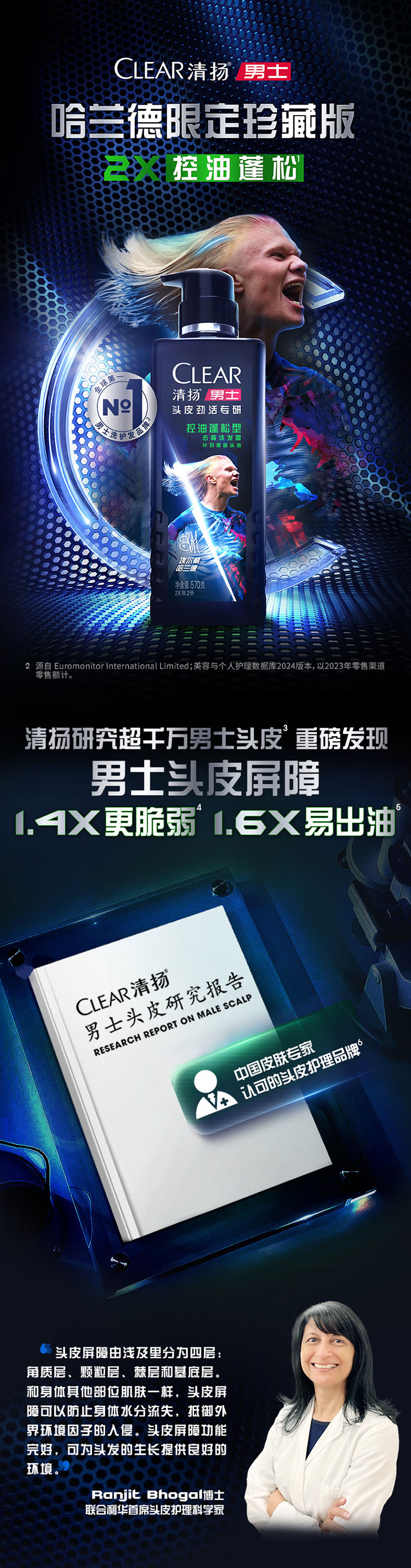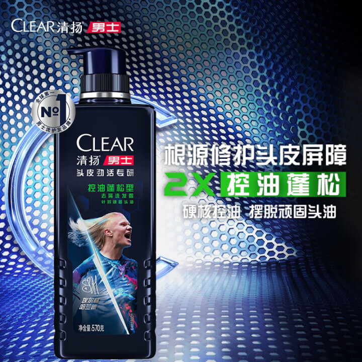 清扬男士头皮劲活专研控油蓬松型哈兰德限定款570g*1