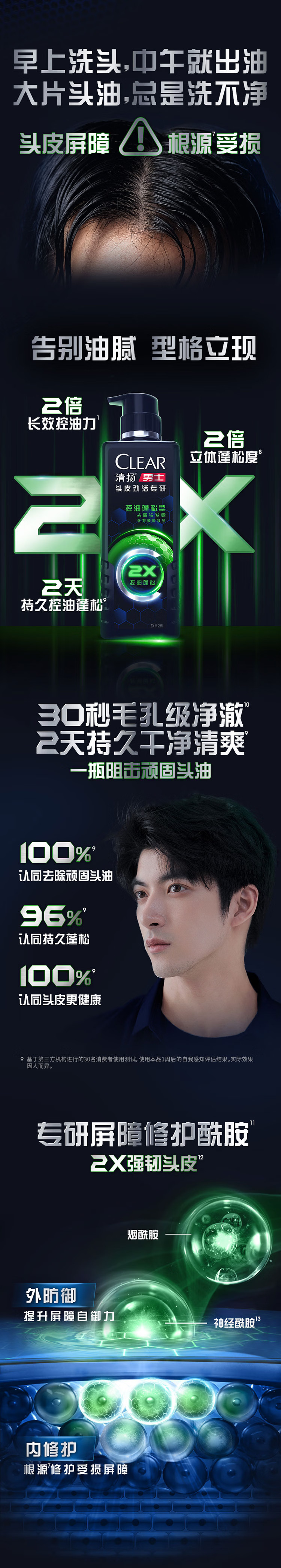 清扬(CLEAR)男士劲能瓶头皮劲活专研控油蓬松型洗发水570g 限定款