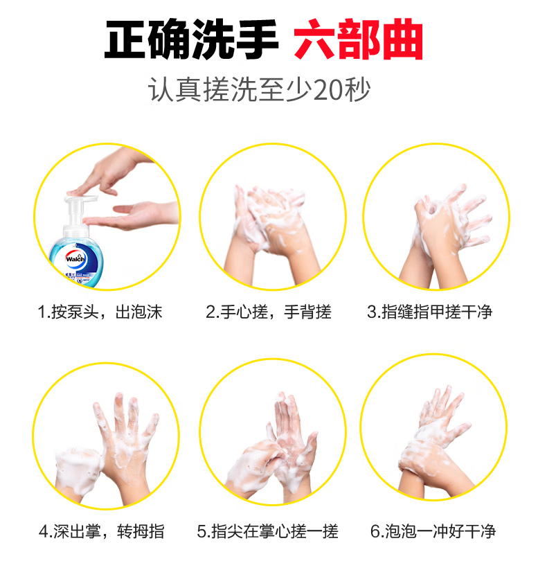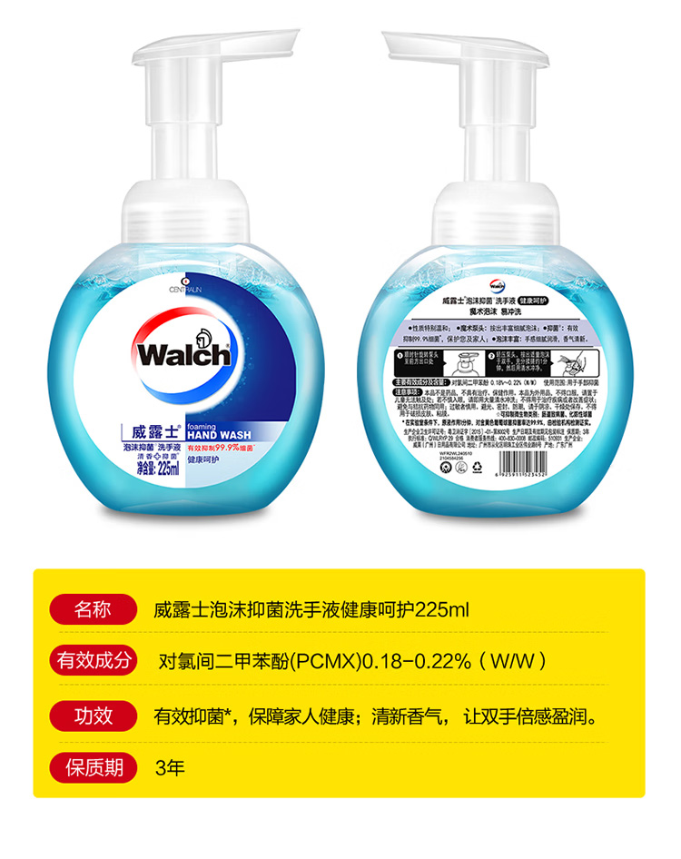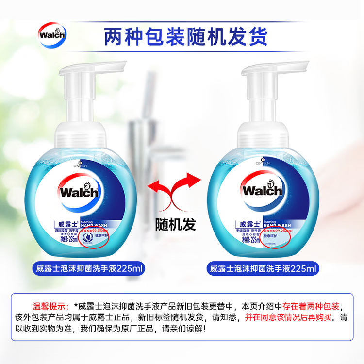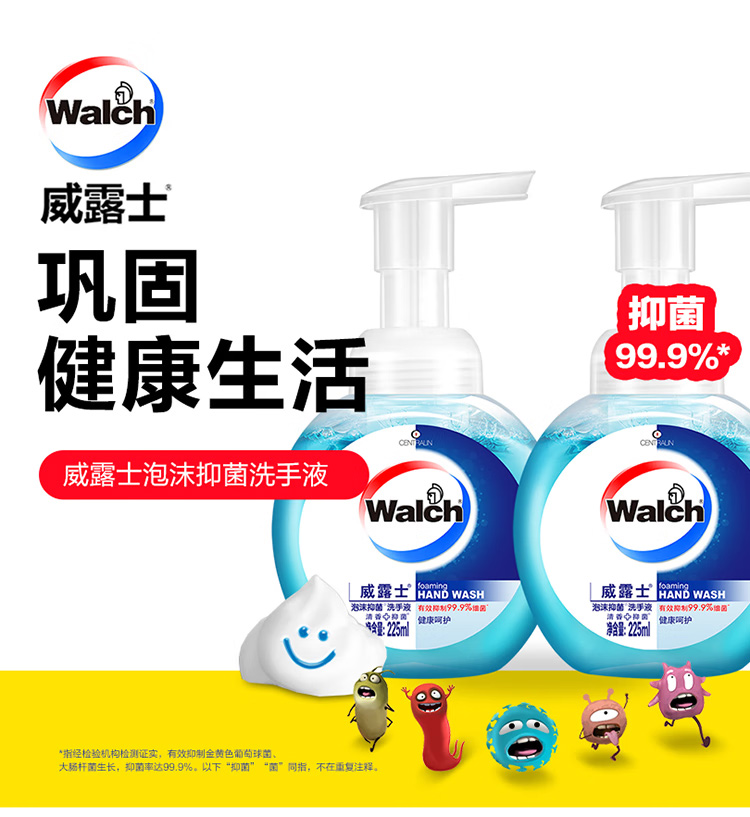 威露士泡沫洗手液健康呵护225ml×2瓶 家用儿童抑菌消毒泡泡易冲洗护手